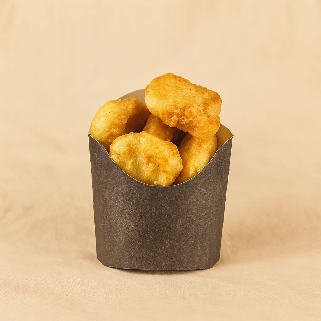 Deliciosa porção de nuggets com uma casquinha fina e crocante e uma deliciosa textura de peito de frango de verdade.